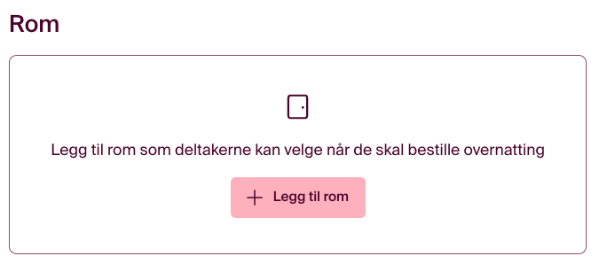 Tips! Mange arrangører velger å reservere et antall rom på et nærliggende hotell i forbindelse med arrangementet, og tilbyr disse rommene til deltakerne via påmeldingen i Checkin. Dette forenkler bestillingsprosessen, ettersom deltakerne kan ordne både deltakelse og overnatting i én samlet bestilling. I tillegg gir dette muligheter for mersalg og bidrar til at deltakerne får en mer helhetlig opplevelse av arrangementet.
