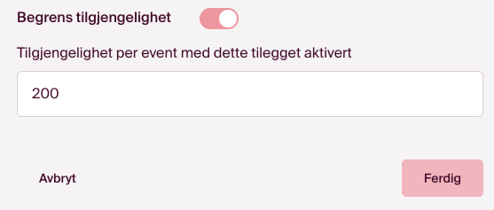 Har du bare 200 sett med sengetøy, eller 50 brannslukkingsapparat tilgjengelig? Nå kan du legge inn begrensning på antallet på tilleggene inne på overnatting!